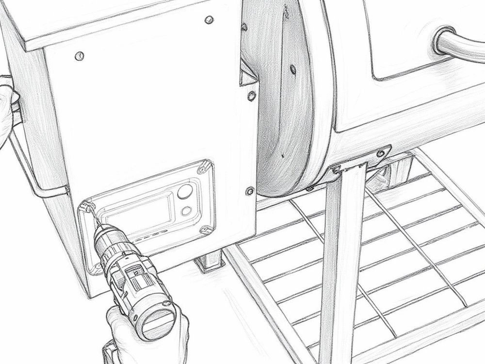 Unscrew the existing controller from the grill and save the mounting screws for reuse.
