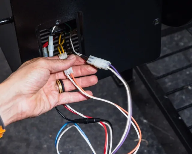 Connect the ends of the wiring harness to the grill’s plugs matching each wire to the corresponding connection you noted earlier.