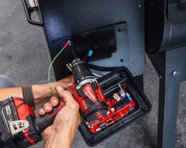 Connect the green wire to the grill body using one of the screws and mounting points previously used to secure the original controller.