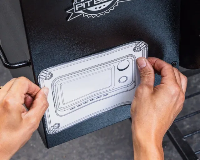Using the template provided, find the best location for mounting the Pellet Drive. Choose a location that fully covers the hole left by the old controller and allows for easy passage of wires from the Pellet Drive into the hopper assembly. Tape the template in place at this location to mark where the pilot holes will be drilled.