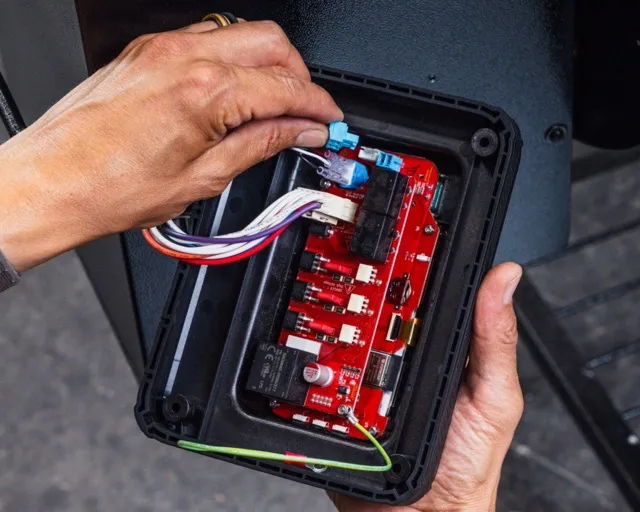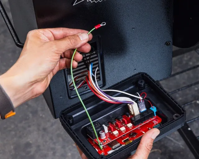 Attach the green wire from the Pellet Drive to one of the original controller mounting points, securing it with the same screw that was originally used.