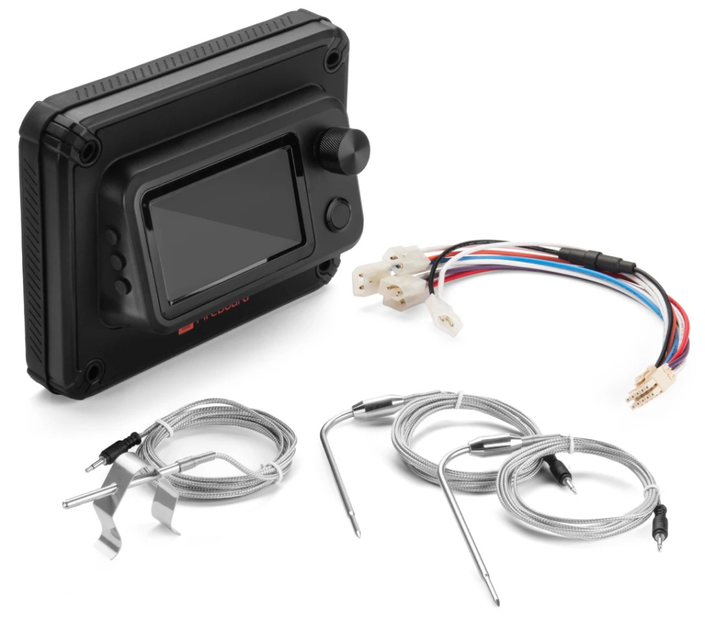 The FireBoard Pellet Drive ships with – the FireBoard Pellet Drive, rubber gasket, 2 food probes, 1 ambient probe, grill clip, wiring harness, blue terminal block, drill bit, 4 stainless steel screws, small screwdriver, mounting template, Quick Installation Guide, Quick Start Guide and other documentation.